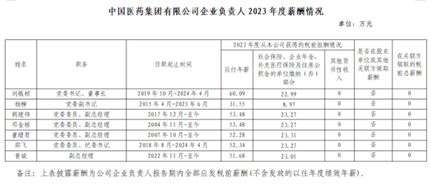 國(guó)藥集團(tuán)企業(yè)負(fù)責(zé)人2023年度薪酬情況